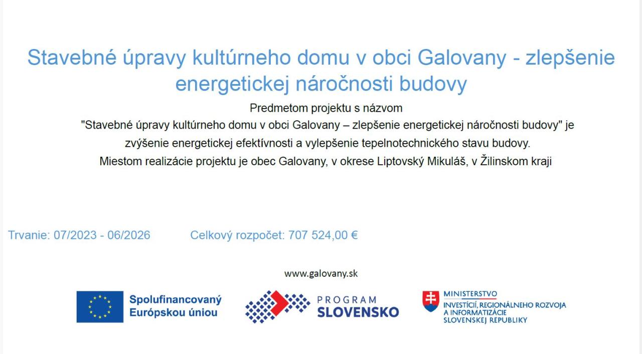 "Stavebné úpravy kultúrneho domu v obci Galovany – zlepšenie energetickej náročnosti budovy"